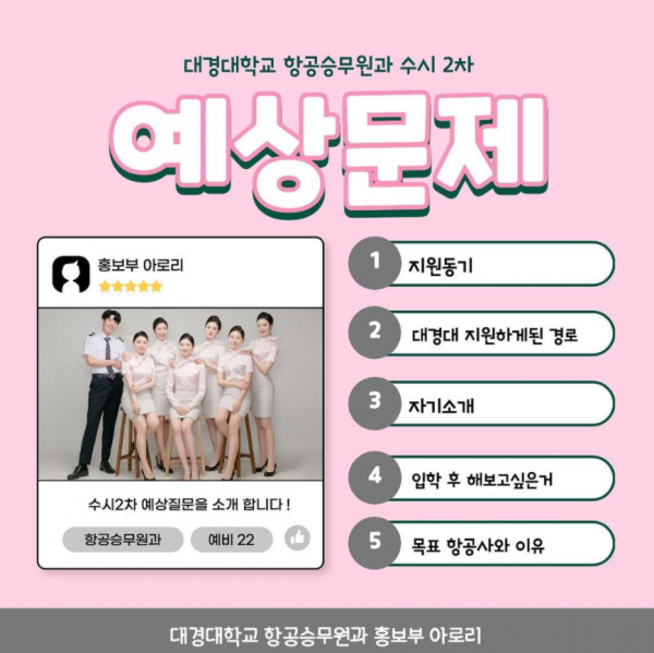 안녕하십니까 대경대학교 항공승무원과 홍보부 아로리입니다