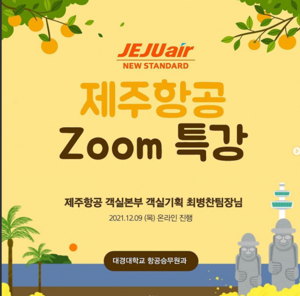 오늘 저희 대경대학교 항공승무원과 학생들에게 제주항공 객실본부 객실기획 최병찬 팀장님께서 온라인으로 특강을 해 주셨습니다 !