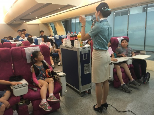 학교 항공실습실에서 직접 승무원 체험 실습을 실시하여