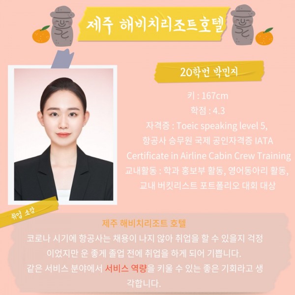 제주 해비치리조트호텔에 취업하신 박민지 선배님 스펙