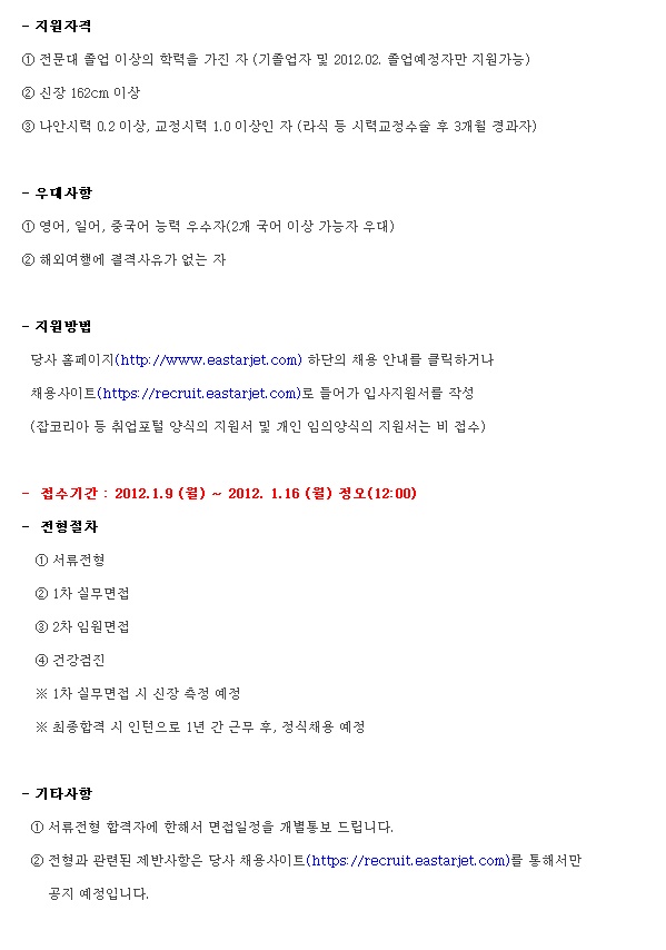 이스타항공 객실승무원 채용 공고 페이지 정보 작성자 관리자 작성일2012-01-11 15:36 조회5,730회 댓글0건 관련링크 이전글 다음글 목록 본문 이스타항공 객실승무원 채용공고 댓글목록 등록된 댓글이 없습니다. 이전글 다음글 목록