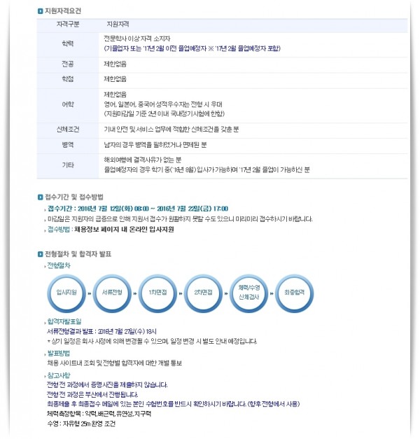 에어부산 채용 공고 페이지 정보 작성자 관리자 작성일2016-07-21 22:55 조회4,289회 댓글0건 관련링크 이전글 다음글 목록 본문 에어부산 승무원 채용 댓글목록 등록된 댓글이 없습니다. 이전글 다음글 목록