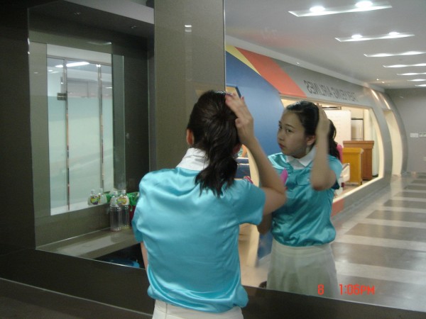 머리모양도 단정히 하고 유니폼도 체크를 하고 있습니다.