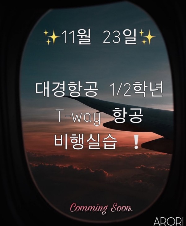 저희 대경대 항공과 1학년,2학년은 11월 23일날 t`way로 실습을 떠납니다!
