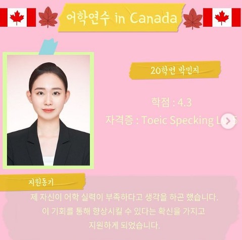 캐나다 재학생 글로벌 현장 체험 프로그램 선발 [ 박00 선배 ]